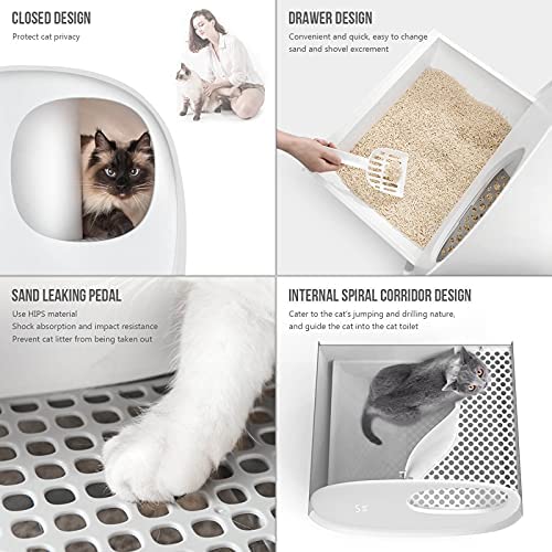 [Perfektes Design]: Die gesamte Katzentoilette hat ein geschlossenes Design, um die Privatsphäre der Katze beim Betreten der Toilette zu schützen; der Innenraum nutzt ein spiralförmiges Korridortunnel-Design, um das Spring- und Bohrtalent der Katze zu stimulieren, die Katze zur Toilette zu führen und der Katze eine schnellere Anpassung an die Katzentoilette zu ermöglichen.