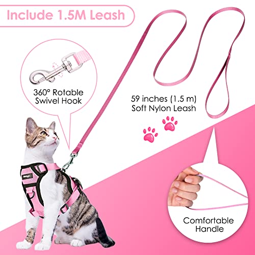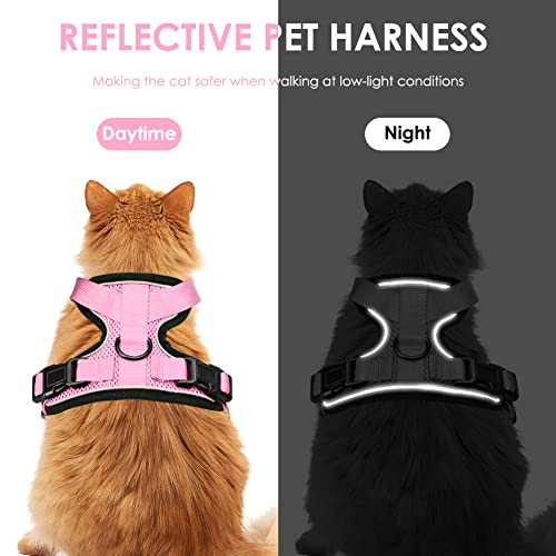 Katzengeschirr mit Leine Ausbruchsicher Katzenleine Set Verstellbar weich Kätzchenweste mit Reflektierenden Streifen Brustgeschirr für kleine Kitten (Rosa, S)