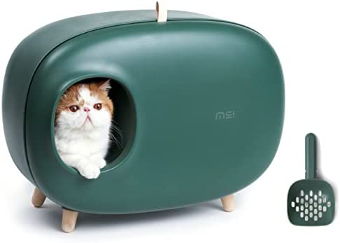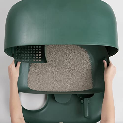 MS Katzentoilette für einfachere Handhabung von Katzenstreu, geschlossenes Design, leicht zu reinigen, verhindert Auslaufen von Sand, einfache Montage und viel Platz, mit Katzenstreuschaufel, moosgrün