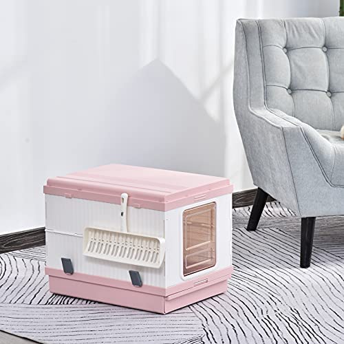 Pawhut Katzentoilette mit ausziehbarer Schale, Katzenklo mit Schaufel, Zusammenklappbar und Tragbar, ABS, Rosa, 54 x 43 x 42 cm