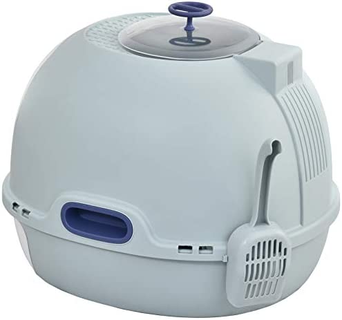 Pawhut Katzentoilette mit Dachfenster, Katzenklo mit Bodenschale, mit Schaufel, Tragbar, PP ABS, 47 x 55 x 44 cm