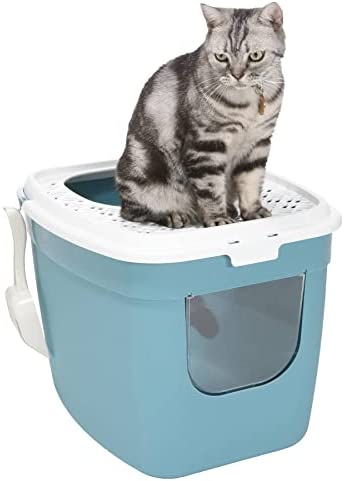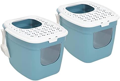 PETGARD 2er Sparpack Katzentoilette Katzenklo mit Einstieg vorne und Oben + gratis Spielzeug Türkis-Weiß