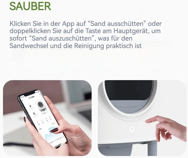🐱[App-Steuerung und -Überwachung]: App-Fernbedienung, Ein-Klick-Ersatz von Katzenstreu und mehr. Überwachen Sie den Katzenkäfig in Echtzeit. Unterstützt Siri-Shortcuts, Google Assistant und Amazon Alexa.